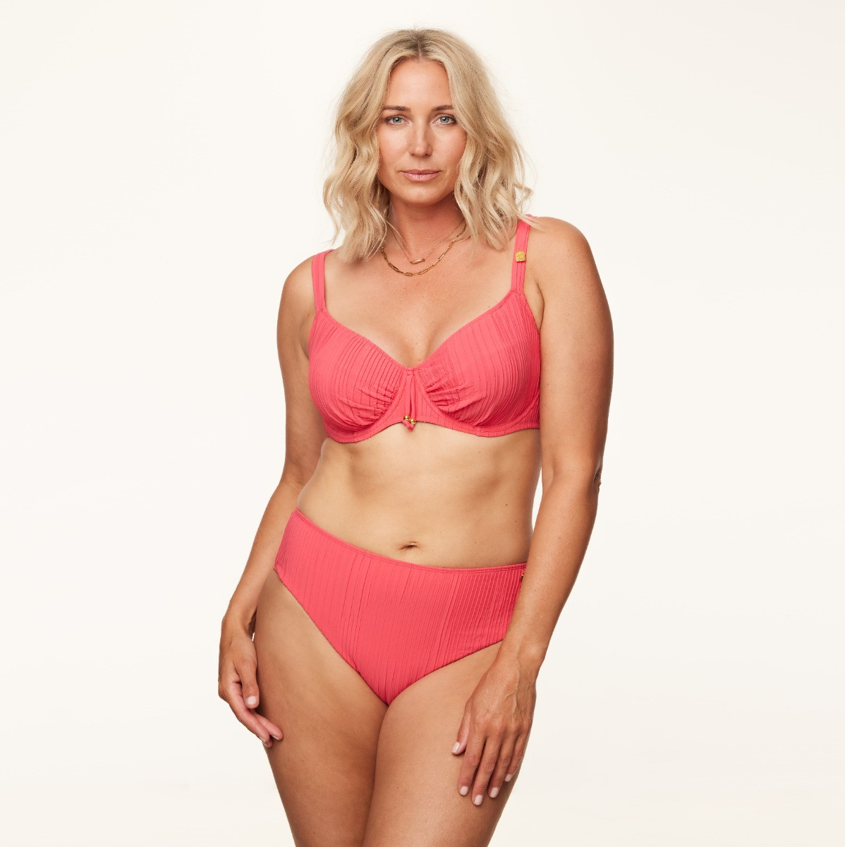 „Der Balconette-BH sorgt sofort für eine schöne Haltung. In Coral Coast fühlt sie sich warm, feminin und kraftvoll. Die Cups heben subtil und geben ihr das gewisse Extra an Selbstvertrauen. Dies ist ein Top, das Sie ohne Übertreibung strahlen lässt.“