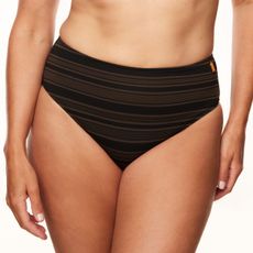 Fühlen Sie sich selbstbewusst in der hoch taillierten Bikinihose Summer Bay von Annadiva Swim, die farbenfrohe Zickzackstreifen und eine schmeichelhafte Silhouette vereint.