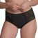 • Taillenslip: Taillenslips sitzen höher auf den Hüften als normale Slips. Die hohe Taille sorgt dafür, dass der untere Teil des Bauches bedeckt und leicht korrigiert wird. Taillenslips bedecken oft einen Teil des Gesäßes.