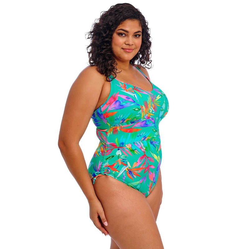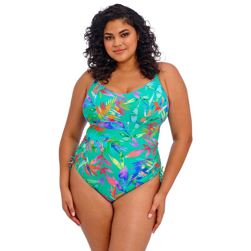 Das Toyama Tides Bikini Hose von Elomi Bademode kommt in der Farbe Jade. Bringen Sie Farbe in Ihren Sommer mit diesem tropischen Bikiniunterteil! Die satten, leuchtenden Farben und der tropische Aufdruck sorgen für einen energiegeladenen Mix, perfekt für einen verspielten Sommerlook. Das Bikini-Unterteil hat eine normale Passform. Kombinieren Sie dieses Bikini-Unterteil mit einem der passenden Bikini-Oberteile.