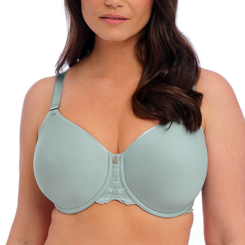 Der Reflect Side Support BH von Fantasie kommt in der Farbe Mist. Die Körbchen dieses hellgrünen BHs sind oben mit einem Streifen aus Spitze in einem einzigartigen Muster aus Blumen und Karos verziert. Dieser BH ist mit "Side Support" ausgestattet, d.h. die Seiten sind verstärkt und geben den Brüsten zusätzlichen Halt. Die Schulterträger sind mit goldenen Ringen befestigt. Kombinieren Sie diesen BH mit dem passenden Slip. Die perfekte Kombination aus Komfort, Halt und Mode.