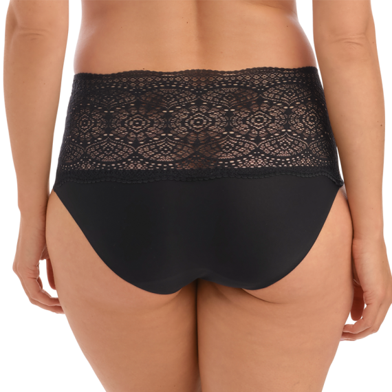 Der Lace Ease Slip von Fantasie ist in der Farbe Black erhältlich. Dieser schwarze Slip sitzt schön hoch auf der Taille, was ideal ist, um einen möglichen Bauch zu kaschieren. Der Slip hat eine elegante Spitze am oberen Rand. Dieser Slip ist in einer Einheitsgröße erhältlich und wird Ihnen gut passen, wenn Sie die Kleidergrößen S bis XL tragen. Der Slip kann mit jedem beliebigen BH kombiniert werden. Ein perfektes Basic für Ihre Dessous-Schublade!