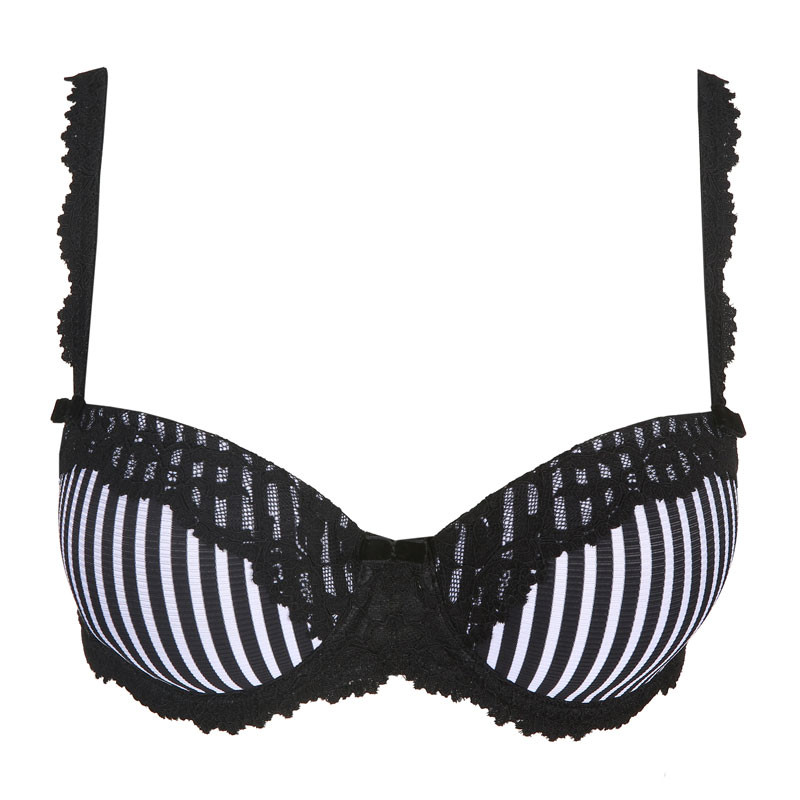 De Sydny hartvorm BH van Marie Jo is uitgevoerd in de kleur Tuxedo Black. Deze zwarte BH speelt met sensueel kant en een elegante ribstof. Een verrassende combinatie die je wilt showen! De voorgevormde cups zijn overtrokken met kant en ondersteunen en centreren de borsten voor een verleidelijk decolleté. Het sensuele kant loopt mooi over in de schouderbandjes. De velvet strikjes bovenaan en tussen de cups maken de BH af. Combineer deze BH met een van de bijpassende slips. Tijdloze lingerie die past bij elke stijl en elke look.