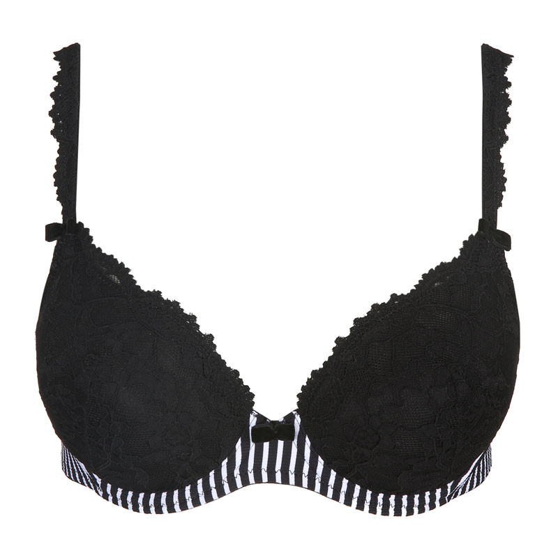 De Sydny voorgevormde balconette BH van Marie Jo is uitgevoerd in de kleur Tuxedo Black. Deze zwarte BH speelt met sensueel kant en een elegante ribstof. Een verrassende combinatie die je wilt showen! De voorgevormde cups zijn bovenaan versierd met een strookje kant en geven de borsten een subtiele lift. Het sensuele kant loopt mooi over in de schouderbandjes. De velvet strikjes bovenaan en tussen de cups maken de BH af. Combineer deze BH met een van de bijpassende slips. Tijdloze lingerie die past bij elke stijl en elke look.
