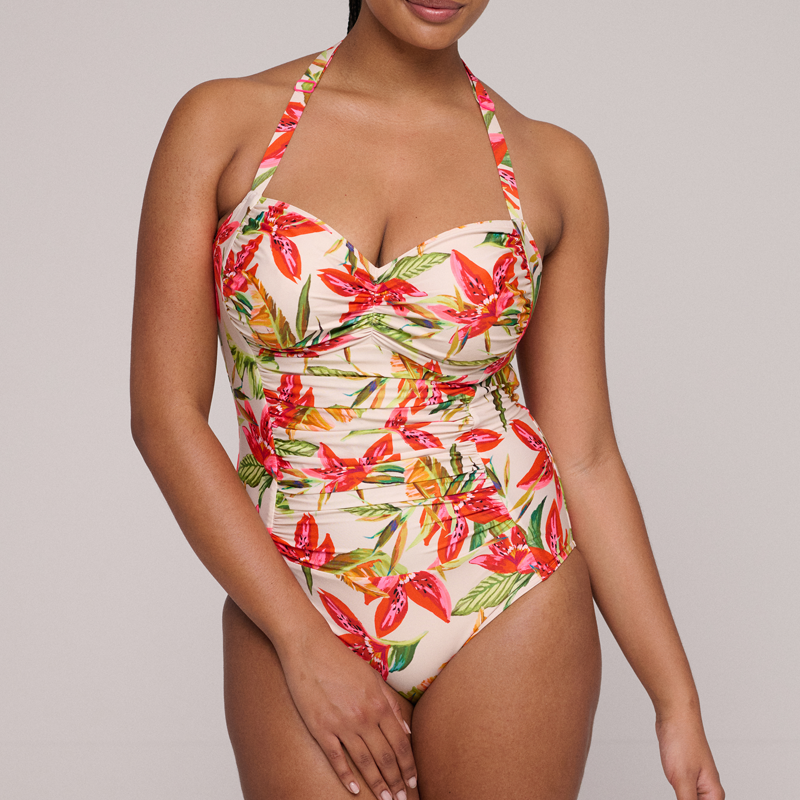 Das Tanzania Maxi Dress von PrimaDonna Bademode kommt in der Farbe Calm Tropics. Mit diesem farbenfrohen Strandkleid fühlen Sie sich wie in einem tropischen Paradies. Das Kleid zeigt einen exotischen Druck mit einem Hauch von Neon auf einem cremefarbenen Grund. Der auffällige Druck sorgt für fröhliche Sommerstimmung, während der weiche Untergrund für Ruhe sorgt und so ein perfektes Gleichgewicht schafft. Das Kleid fällt bis zu den Knöcheln und hat eine lockere Passform. Kombinieren Sie dieses Maxikleid mit der passenden Bademode.