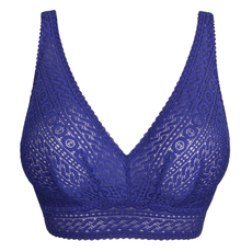 Der Montara Bralette von PrimaDonna kommt in der Farbe Schwarz. Dieser schwarze Bralette ist vollständig mit elastischer Spitze verziert. Die zusätzliche Borte am unteren Rand verleiht dem Bralette eine Longline-Passform. Das Bralette hat keine Bügel, wodurch es sich besonders weich und bequem anfühlt. Die festen Cups stützen den Busen und zentrieren ihn für ein schönes Dekolleté. Die durchscheinenden Materialien verleihen dem Bralette einen verführerischen Look. Kombinieren Sie dieses Bralette mit einem der Montara-Slips.