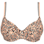 Der Fame Herzform Bh von PrimaDonna Twist in der Farbe Vintage Natur. Dieser lachsfarbene BH hat ein verspieltes Leopardenmuster. Die Träger sind aus verschiedenfarbigen Streifen: Grau, elfenbeinfarben und lachsrosa. Dank der glatten Körbchen eignet sich der Bh auch unter enganliegender Kleidung. Die Körbchen von diesem BH sind schön hoch geschnitten.