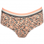 Der Fame Hotpants von PrimaDonna Twist in der Farbe Vintage Natur. Diese lachsfarbene Hotpants hat ein verspieltes Leopardenmuster. Das Bündchen des Strings besteht aus verschiedenfarbigen Streifen: Grau, elfnebeinfarben und lachsrosa. Die hippe Hotpants ist aus weichem Stretchstoff und bietet dadurch hogen Tragekomfort.